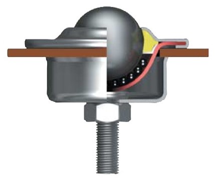 Sie bestehen aus einer großen Tragkugel, die auf vielen kleinen Kugeln sitzt, die in einer Halbkugelschale gekapselt sind. Das Gehäuse kann eine Dichtung enthalten, um die Lastkugel bei ihrer Drehung zu reinigen. Die Konstruktion verringert die Reibung erheblich und ermöglicht es, schwere Lasten mit einem Minimum an Kraftaufwand zu bewegen.