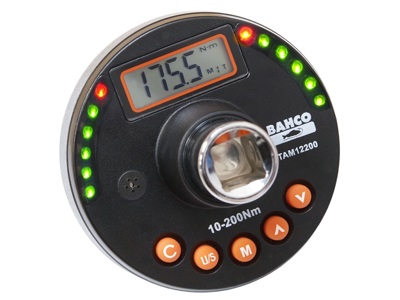 - Jakoukoliv standardní ráčnu, přesuvnou rukojeť tvaru T nebo tyč s výkyvným unašečem změní na digitální měřič momentu nebo úhlu.