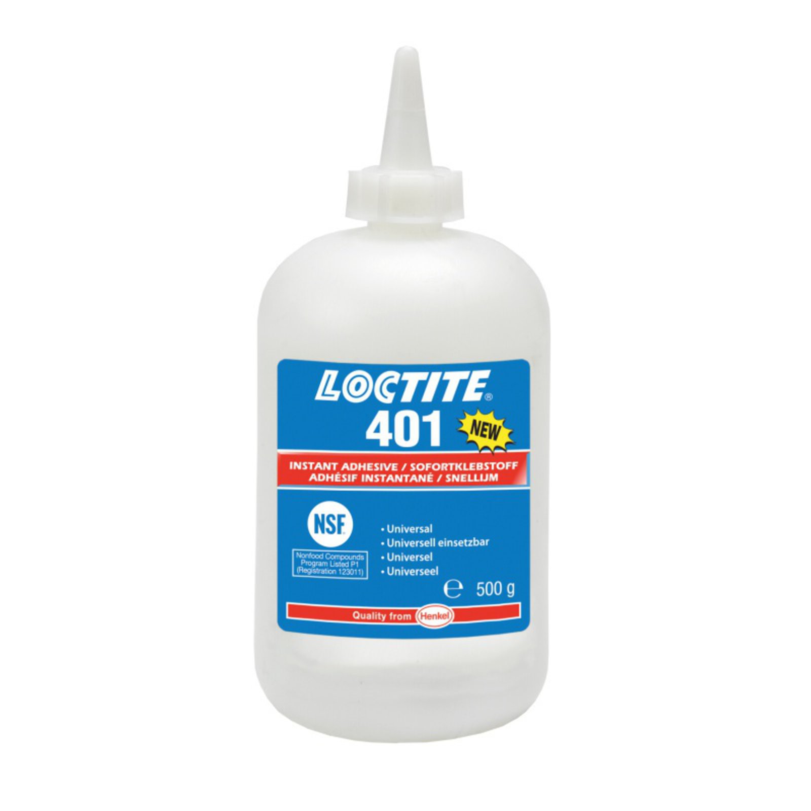 Vteřinové lepidlo Loctite 401 je určeno pro lepení obtížně lepitelných materiálů, které vyžadují rovnoměrné zatížení a velkou pevnost v tahu a ve smyku. Vteřinové lepidlo lepí v tenké spáře během několika sekund, přitom se lepená spára vyznačuje dokonalým vzhledem.