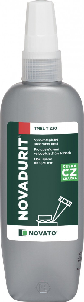 NOVADURIT® T 230 je vysokopevnostní jednosložková anaerobní pryskyřice s vysokou viskozitou určená pro upevňování válcových dílů v zařízeních s velkou teplotní zátěží až do 230 °C. Maximální obvodová spára je až 0,35 mm. Barva zelenomodrá.