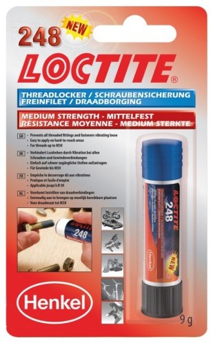 Loctite 248 dosahuje střední pevnosti je zejména dobře použitelný v těch případech, kdy kapalné produkty jsou příliš řídké a stékají ze součástí nebo se obtížně nanášejí. Snadno se skladuje a umožňuje přímý kontakt se závitovými díly během nanášení, což zajišťuje rovnoměrné rozložení produktu.