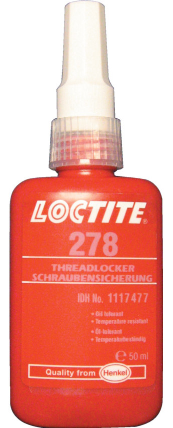 Loctite 278 je určen pro trvalé upevňování a utěsňování závitových spojů. Produkt vytvrzuje bez přístupu vzduchu ve spáře mezi lepenými kovovými povrchy a zabraňuje uvolnění či prosakování spoje, způsobené vibracemi a rázy.