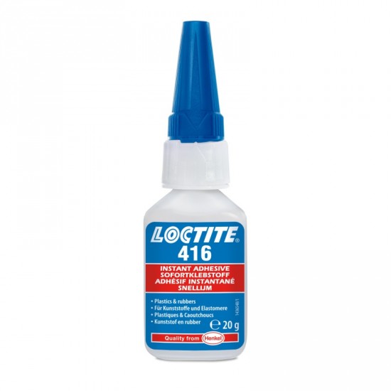 Loctite 416 je vteřinové lepidlo střední viskozity určené pro běžné lepení. Výborně lepí oceli, hliníky, PVC, ABS a přilne k většině podkladů. Lepí v tenké spáře během několika sekund. Loctite 416 odolává freonu i isopropanolu.