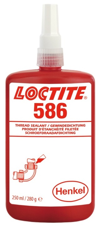 Loctite 586 vytvrzuje bez přístupu vzduchu ve spáře mezi lepenými kovovými povrchy. Používá se jako závitové těsnění proti vodě, oleji a většině běžných organických materiálů. především vhodná pro mosazné povrchy. Produkt rychle vytvrzuje bez přístupu vzduchu ve spáře mezi dvěma kovovými povrchy. Loctite 586 je červená jednoslozková pasta.