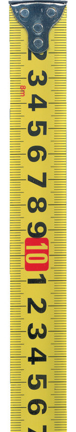 Svinovací metr s gumovým obalem odolným proti pádu, povrchově upravená páska pro dlouho životnost s ocelovým háčkem pro vnitřní i vnější měření, ocelová spona pro zavěšení na opasek, šíře pásku 16mm