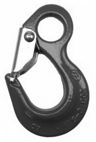 Hák s okem se záklopkou (bezpečnostní pojistkou) určenou proti vysmeknutí břemene nebo úvazku. Nejčastější použití pro lanové vázací prostředky, je…