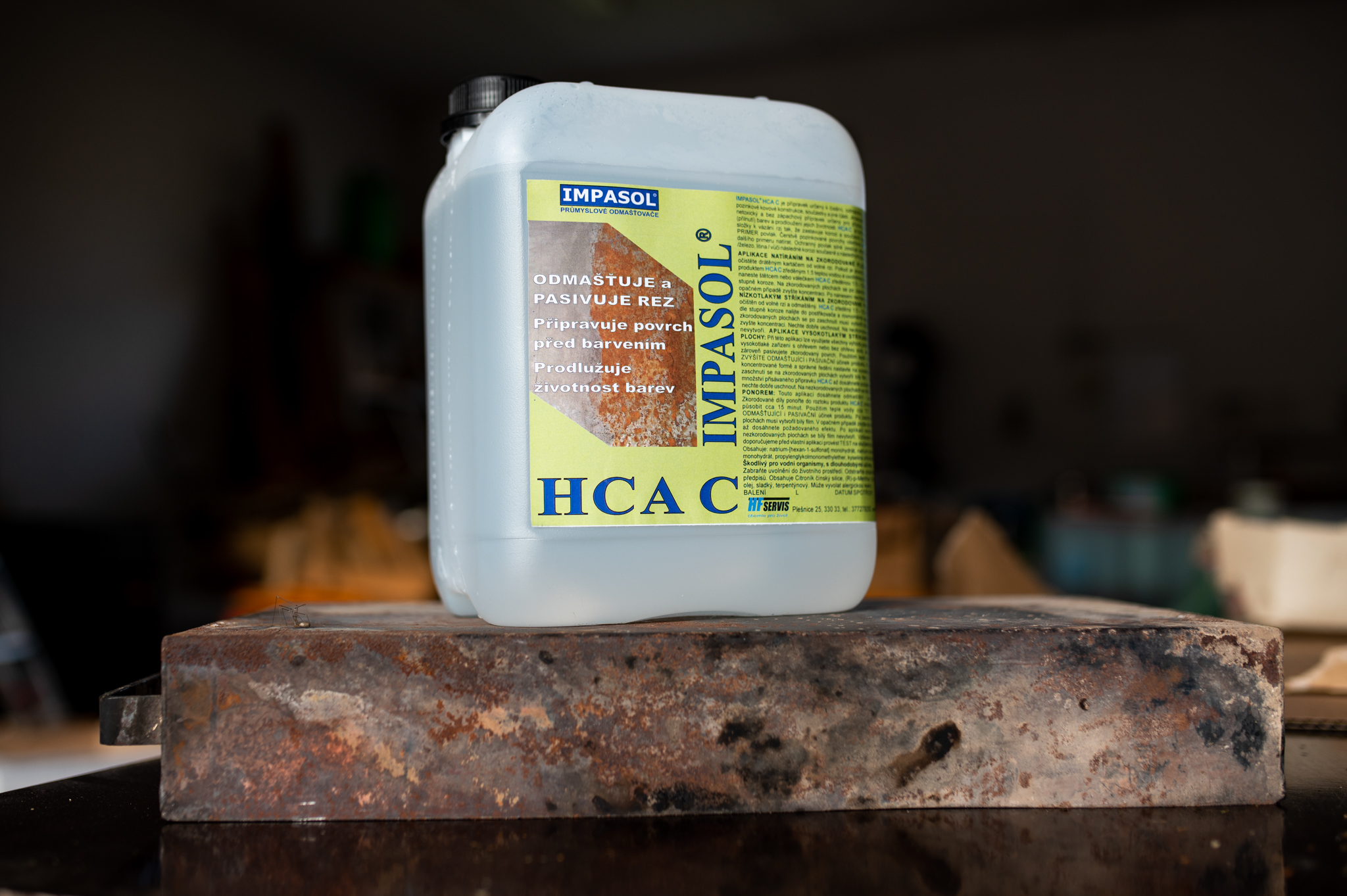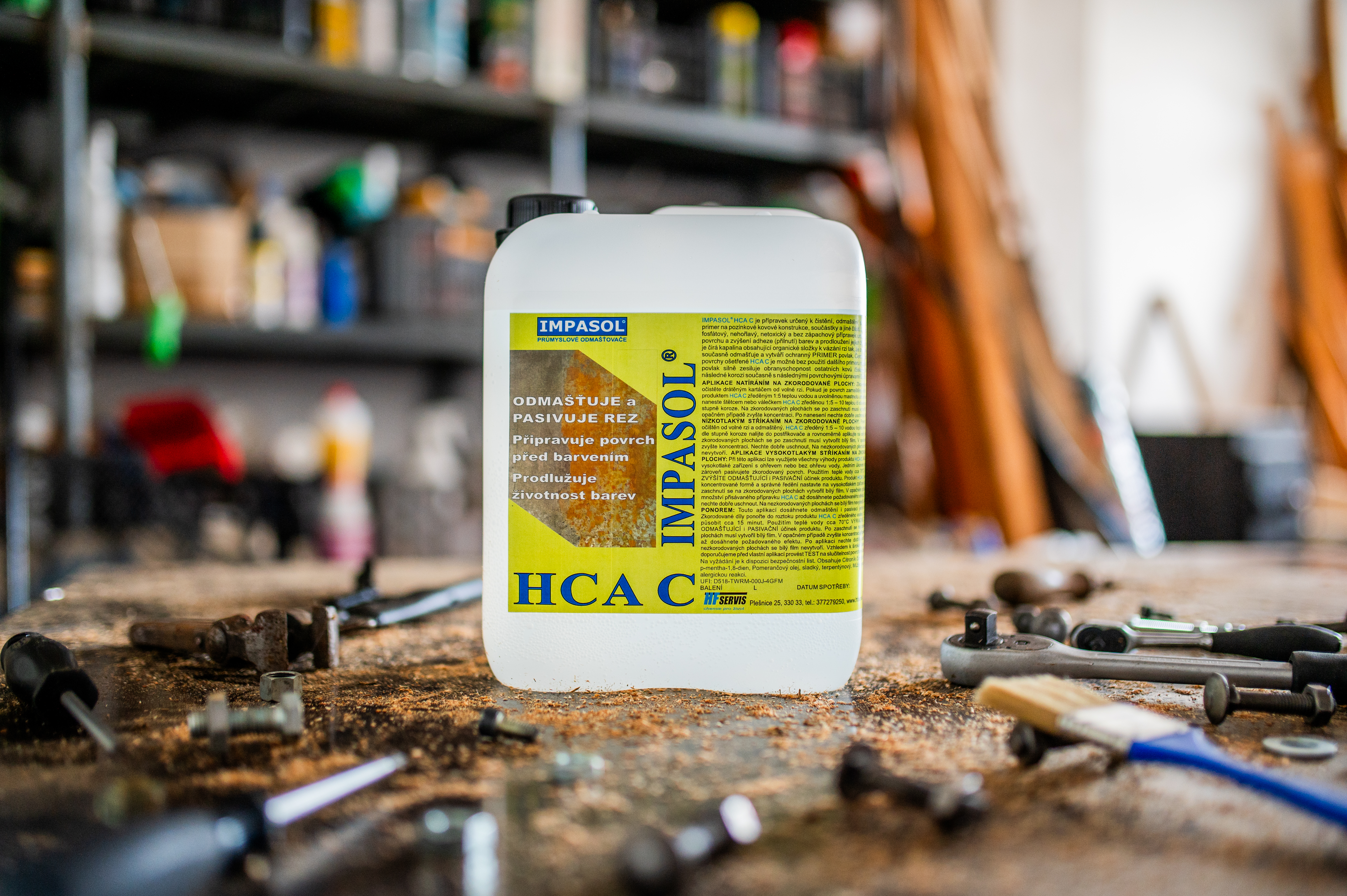 IMPASOL HCA-C je odmašťující, odrezovací a pasivační absolutně bezpečná, nehořlavá kapalina. Odmašťuje znečištěné povrchy minerálními, rostlinnými a živočišnými mazivy, oleji, některými konzervačními oleji a vosky.