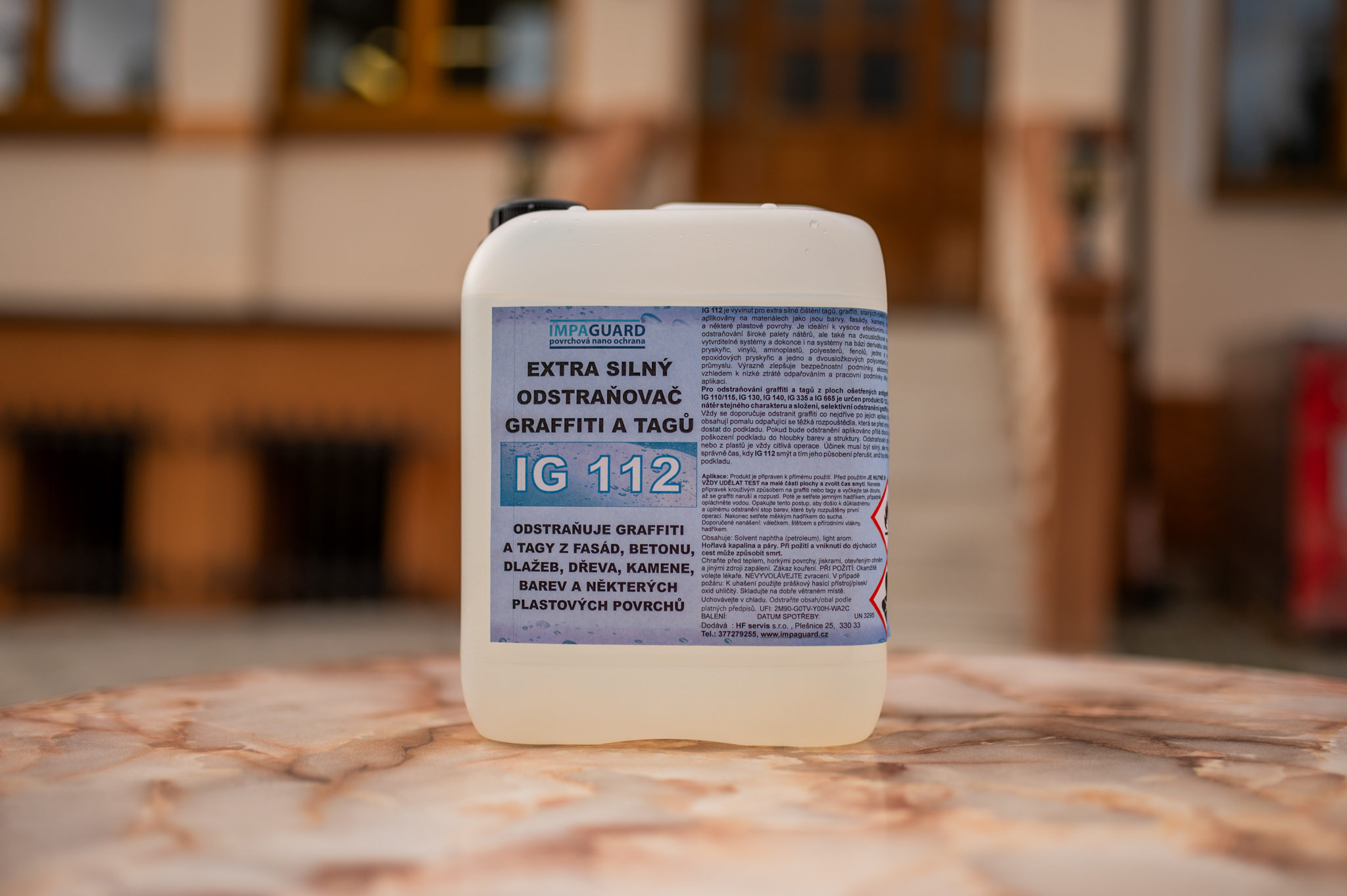 IG 112 je speciálně vyrobený pro extra silné čištění tagů, graffiti, starých nátěrů a laků, které jsou aplikované na materiálech, jako jsou barvy, fasády, kámen, karosérie, dřevo a některé plastové povrchy.