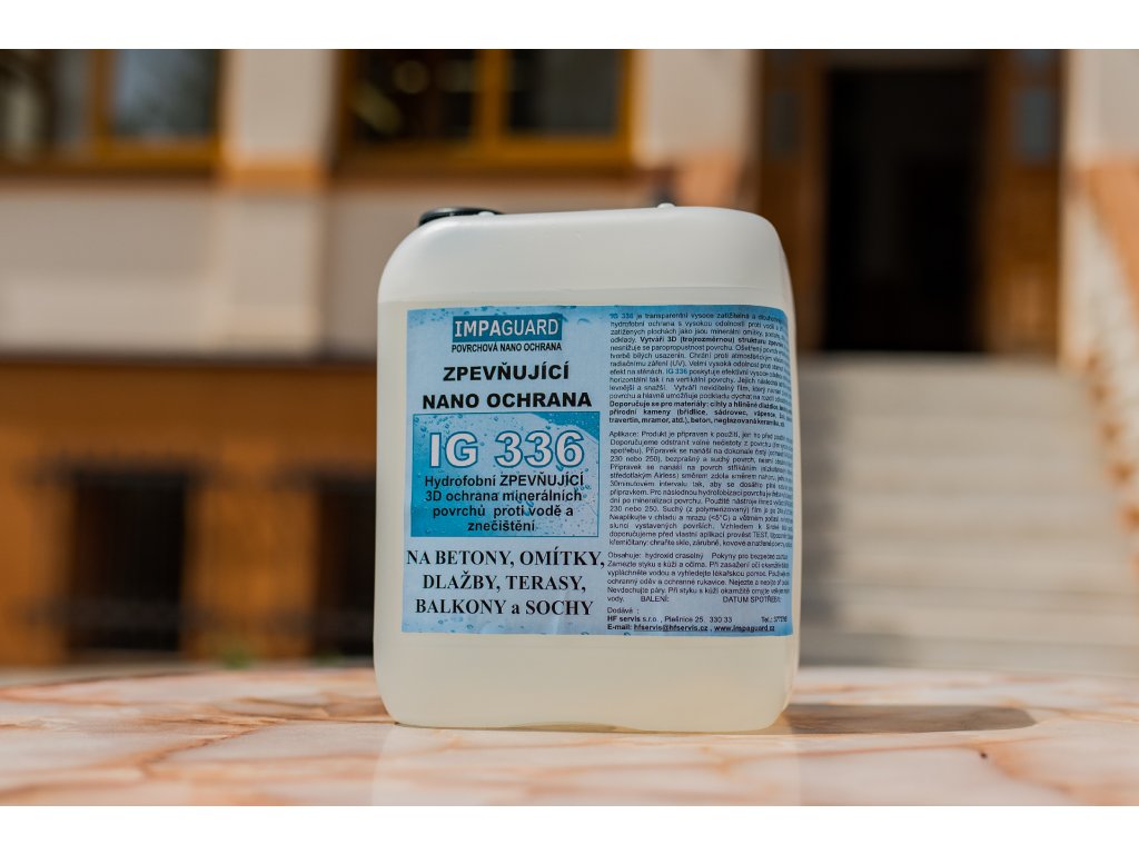 IG 336 nemění povrch, nevytváří na povrchu krustu a zachovává paropropustnost a prodyšnost, díky čemuž je velmi vhodný na sochařská díla, sádrové sochy, fresky, obklady fasád, kamenné stavby, mosty a zábradlí z pískovce. Dále je vhodný k ochraně betonových nebo pálených (neglazovaných) tašek, umělých kamenů, lícových cihel a keramických nebo betonových obkladových pásků. Určen na staré i nové povrchy. Hydrofobní účinek zároveň brání pronikání vlhkosti do ošetřeného povrchu a chrání jej tak před dalším poškozováním a znečištěním. Poskytuje vynikající prevenci proti mechům, řasám a plísním. Chrání proti atmosférickým vlivům a UV záření.
