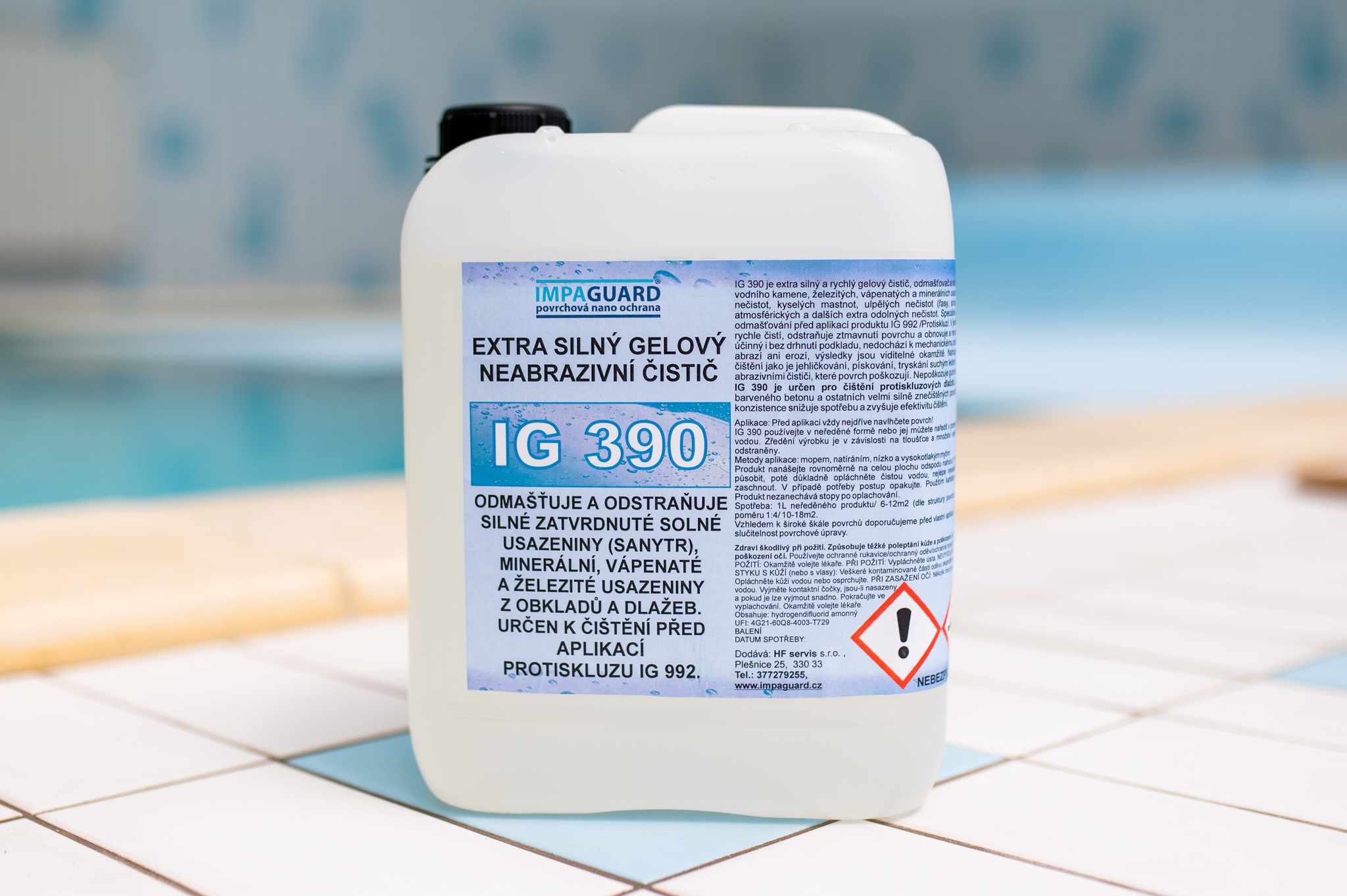 IG 390 gel je vyvinut jako neabrazivní ultra silný a rychlý čistič protiskluzových dlaždic, kamene, žuly a ostatních velmi špatně čistitelných povrchů.