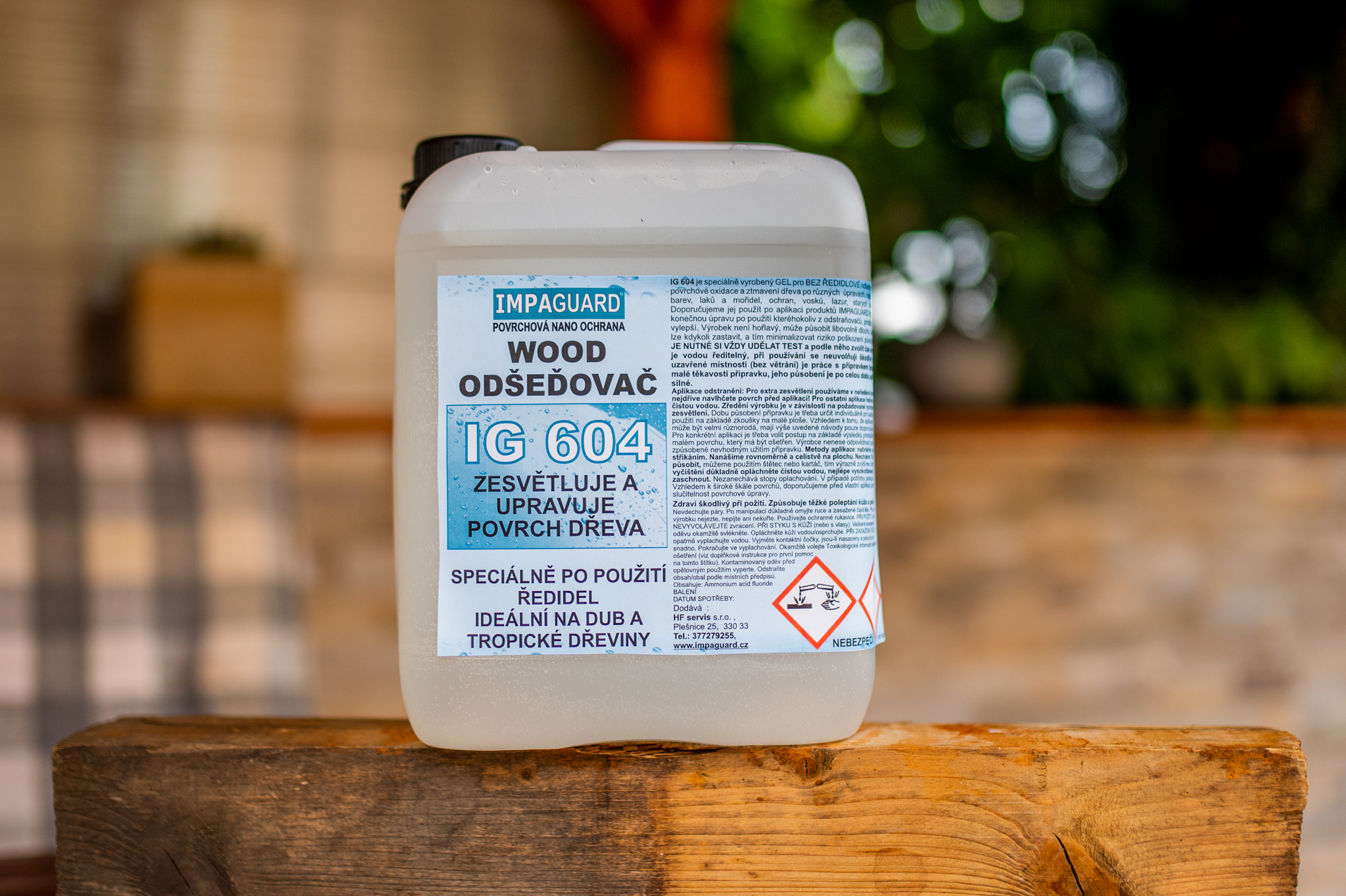 Navrací dřevu původní přírodní barvu a krásu. Produkt není hořlavý, může tedy působit libovolně dlouho. Doporučujeme jej použít po aplikaci produktů IG 612 nebo IG 614, jako konečnou úpravu pro vylepšení povrchu. V případě, že má dřevo znatelný barevný nádech základní penetrace, je nutné ho zmírnit použitím odšeďovače IG 604, čímž se dřevo významně zesvětlí a barevná intenzita původního odstínu se ztlumí.
