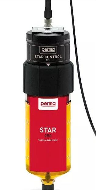Ve srovnání s perma STAR VARIO (se sadou baterií) se jednotka perma STAR CONTROL napájí externím napětím prostřednictvím připojovacího kabelu. Navíc lze provozní stav přenést na jednotku SPS a vyhodnotit. Oba integrované provozní režimy TIME a IMPULSE umožňují pružné použití. Systém mazání dávkuje v režimu TIME v závislosti na hodinách provozu. V režimu IMPULSE se dávkuje přesně jednou nastavené množství ihned po každém přivedení napětí. Systém perma STAR CONTROL se skládá z elektromechanického pohonu a LC s 60, 120 nebo 250 cm3 maziva. Na pohonu se nastavuje požadovaný režim. Promazávání se děje přesně, nezávisle na teplotě s protitlakem do 6 barů.