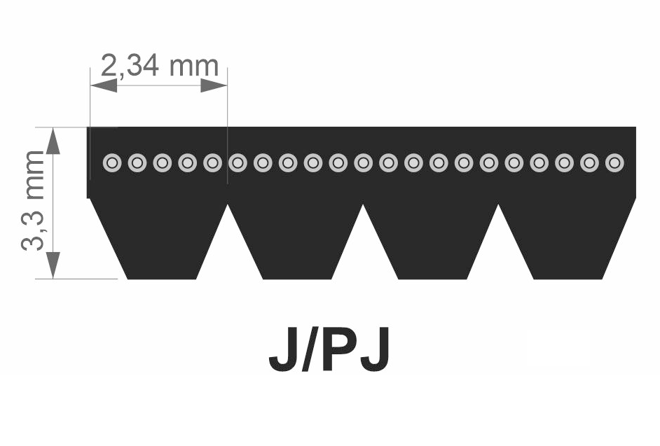 Řemeny profilu PJ mají rozteč žeber 2.34 mm. Využití nacházejí v nejrůznějších průmyslových aplikacích - ve strojírenském, potravinářském nebo stavebním průmyslu.