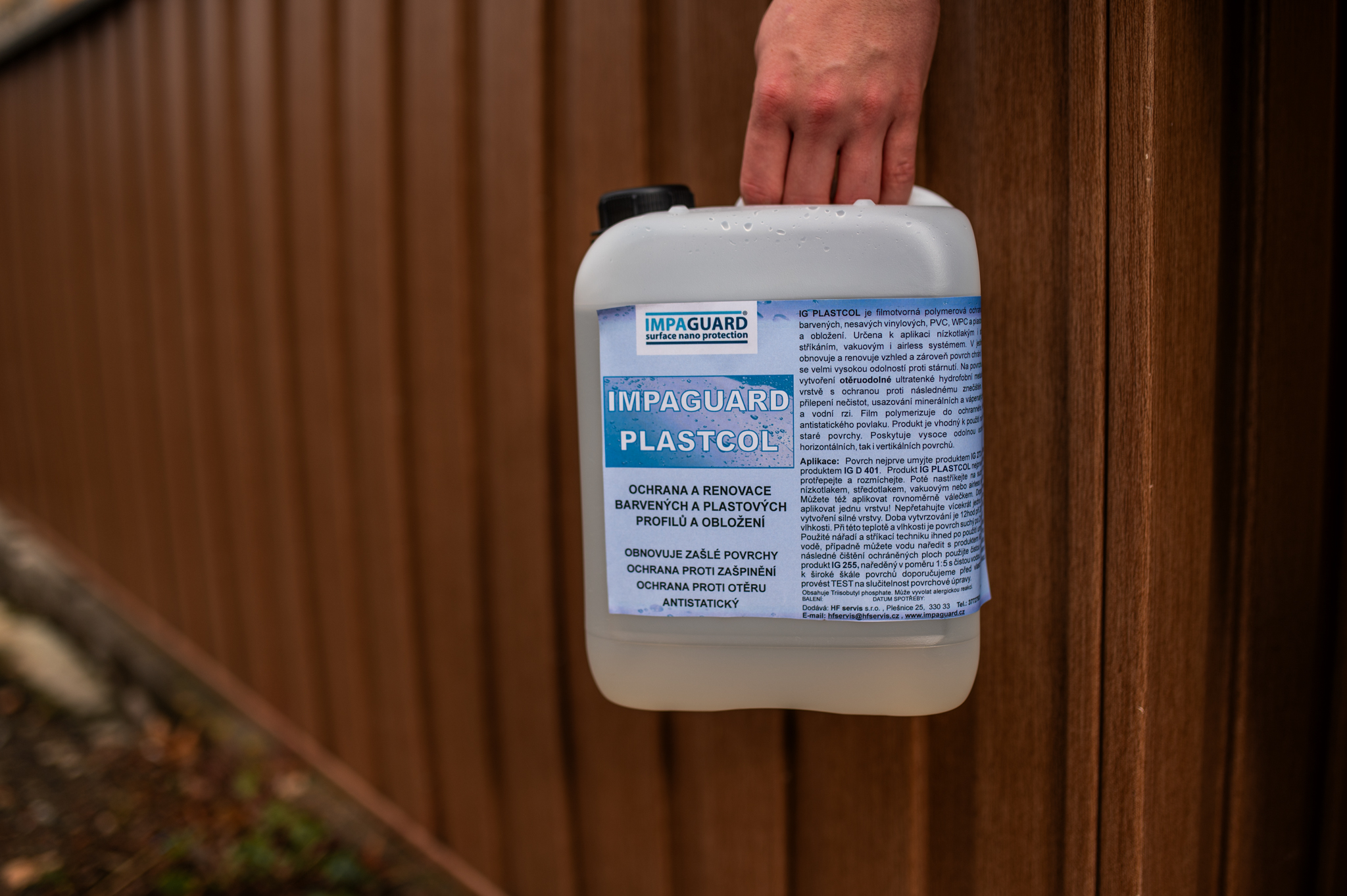 IG PLASTCOL je filmotvorná polymerová ochrana a obnova barvených, nesavých vinylových, PVC, WPC a plastových fasád a obložení. V jediném úkonu obnovuje a renovuje vzhled a zároveň povrch chrání. Na povrchu dochází k vytvoření otěruodolné ultratenké hydrofobní metalicky lesklé vrstvě s ochranou proti následnému znečištění, otiskům, přilepení nečistot, usazování minerálních a vápenatých povlaků a vodní rzi. Ve spojení s biocidem IG D 401 znemožňuje život bakteriím, mechu, plísním a řasám. Film polymerizuje do ochranného finálního antistatického povlaku. Vyznačuje se velmi vysokou odolností proti stárnutí a UV záření.