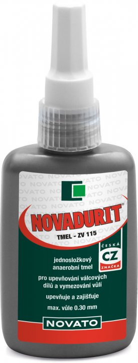 NOVADURIT® ZV 115 je vysokopevnostní jednosložková anaerobní pryskyřice se střední viskozitou určená pro upevňování válcových dílů, kde je požadována maximální pevnost. Maximální obvodová spára je až 0,3 mm. Barva zelená.