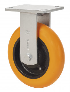 „Kolesá s oceľovým stredom a guľovou pneumatikou z liateho polyuretánu s tvrdosťou 95º Shore A, určené špeciálne pre ťažké bremená do 800 kg.
