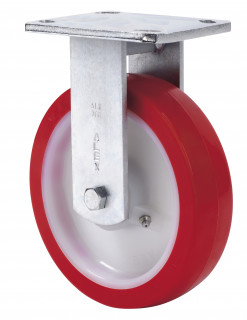 Kolesá s bielym nylonovým stredom a červenými polyuretánovými gumami s tvrdosťou 90º-95º Shore A. Špeciálne navrhnuté pre vysoké zaťaženie do 600 kg.…