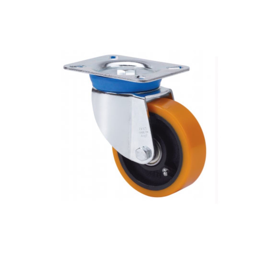 Kolesá s oceľovým stredom a liatou polyuretánovou obručou s tvrdosťou 95º podľa Shoreho tvrdosti A, navrhnuté špeciálne pre ťažké náklady do 800 kg.