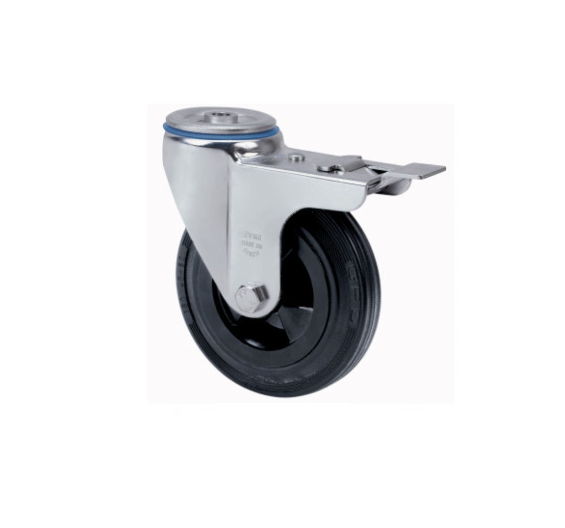 Čierne gumené kolesá. Sú navrhnuté špeciálne pre vysoké zaťaženie do 215 kg. Používajú sa v: Vozíky na náradie, vozíky na rúry, interná logistika,… Úplný popis