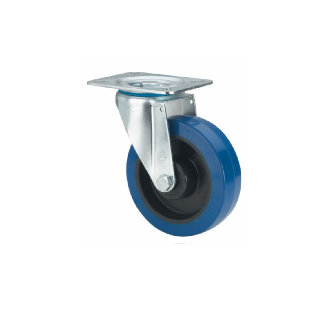 Pružné modré gumené kolieska. Sú špeciálne navrhnuté pre vysoké zaťaženie až do 400 kg.