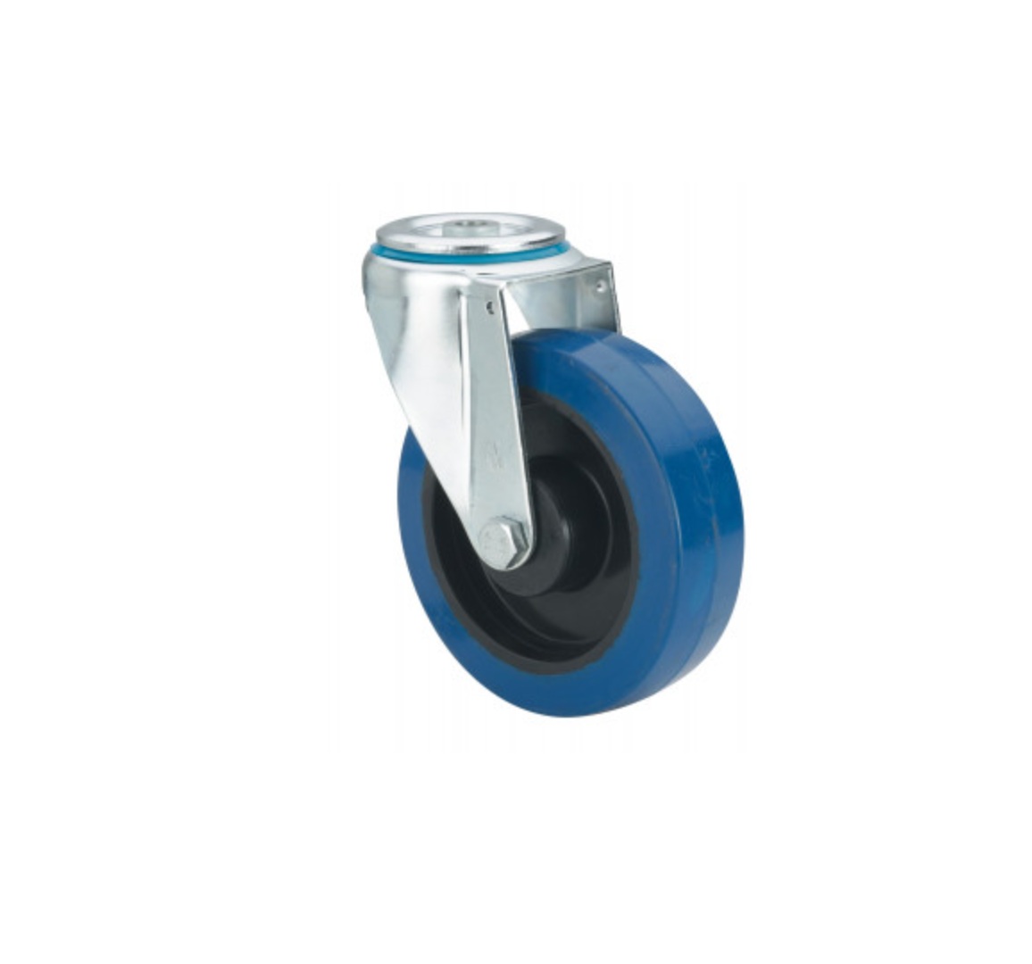Pružné modré gumené kolieska. Sú špeciálne navrhnuté pre vysoké zaťaženie až do 400 kg.