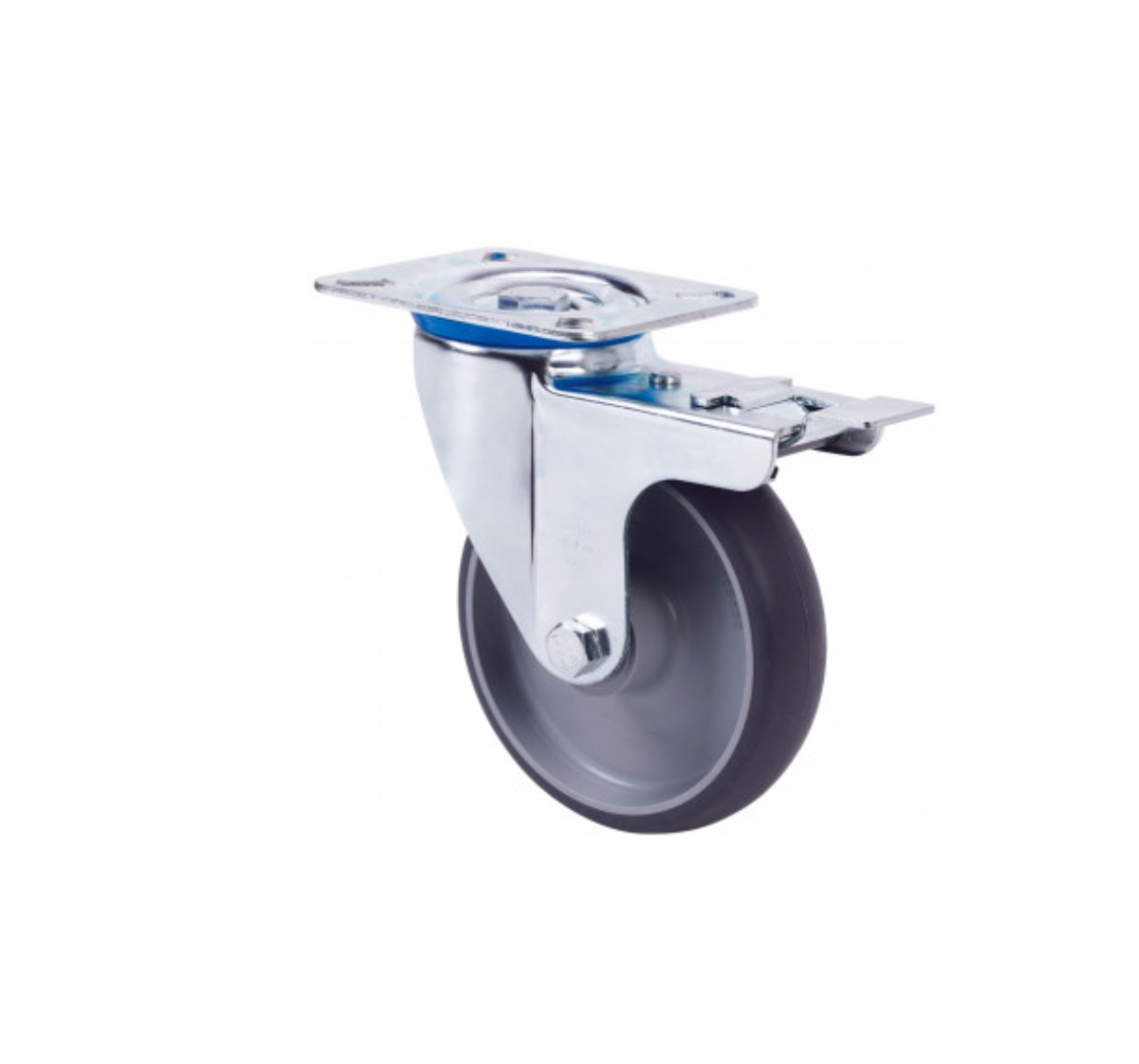 Šedé vstrekované gumové kolesá s polypropylénovým stredom. Sú navrhnuté špeciálne pre ťažké bremená do 180 kg.