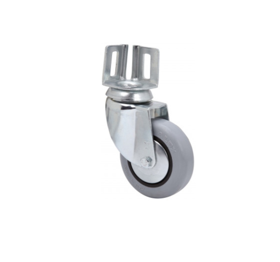 Šedé gumené kolesá so vstrekovaním. Špeciálne navrhnuté pre náklad do 70 kg.