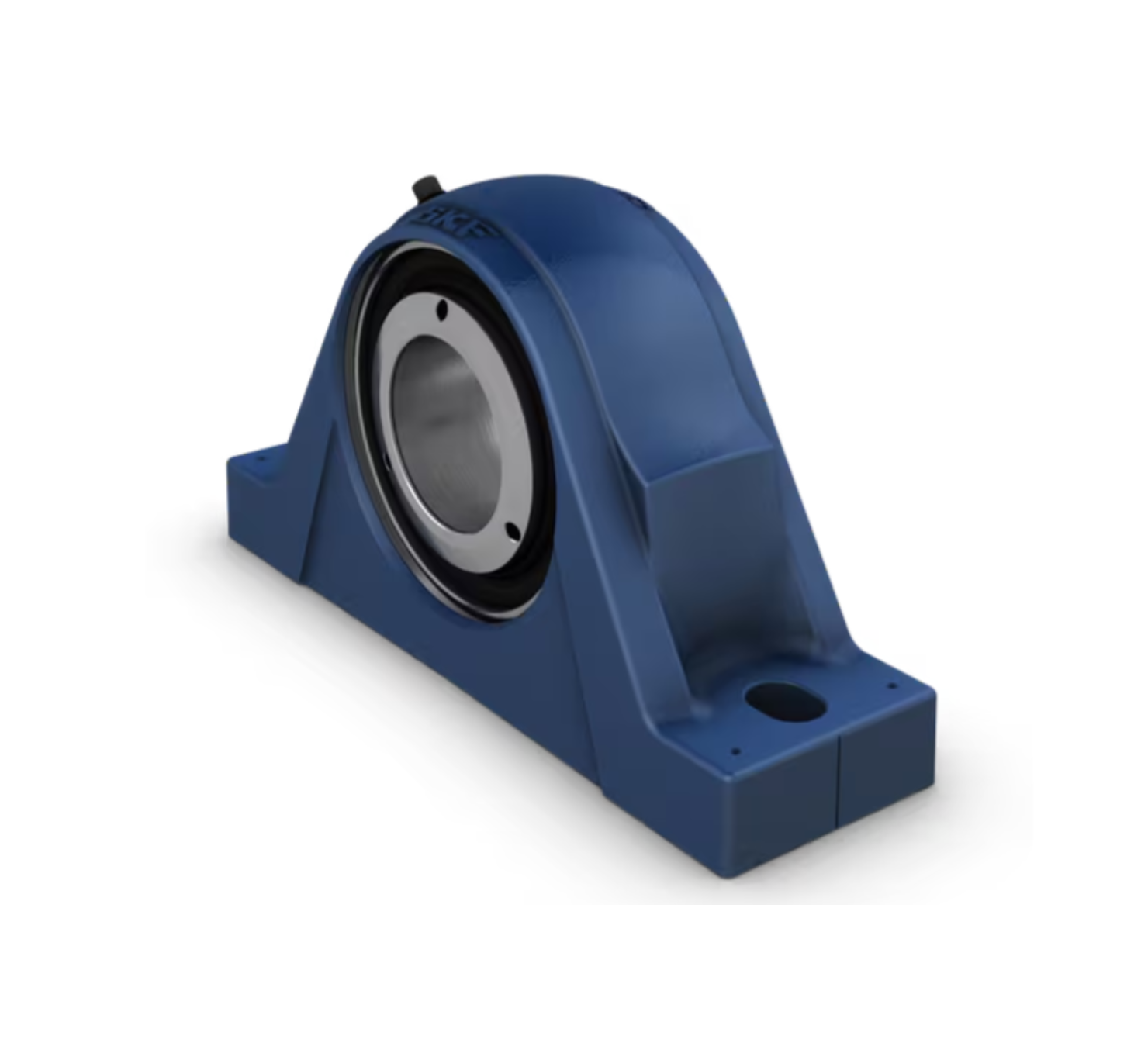 Stacionárne ložiskové jednotky a napínacie ložiskové jednotky pozostávajú z guličkového alebo kuželíkového ložiska namontovaného v nedelenom telese, ktoré môže byť priskrutkované k nosnej ploche. Táto varianta má súdečkové ložisko, základňu s dvoma skrutkami a uzamykanie SKF ConCentra, čím sa vytvára skutočne súosá tuhá zostava s danou správnou vnútornou vôľou v ložisku. Jednotky sú utesnené, namazané a pripravené na použitie. Táto ložisková jednotka spĺňa širokú škálu požiadaviek v metrických rozmeroch.