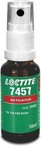 Loctite 7457 se používá pokud je požadováno urychlení vytvrzení kyanoakrylátových lepidel Loctite. Může být použit buď před a nebo po nanesení lepidla. Přítomnost předem aplikovaného produktu Loctite 7457 může být zjištěna díky fluorescenci. Loctite 7457 byl vytvořen tak, aby poskytoval spolehlivou životnost na součástech. Typiké aplikace zahrnují zajišťování drátů a cívek na deskách plošných spojů, zajištění nastavených součástí proti manipulaci, nastavování dorazů, vodítka břitů a výztuhy lepenky.