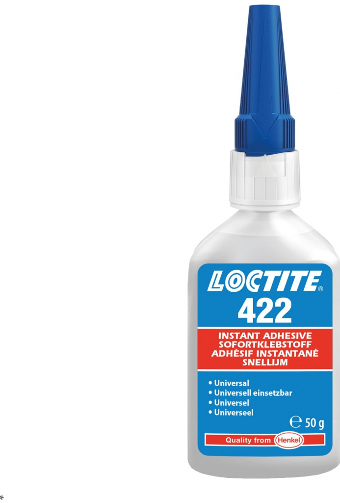 Loctite 422 je vteřinové lepidlo určené pro běžné lepení, umožňuje rychlé lepení široké škály materiálů, včetně kovů, plastů a elastomerů. Lepí v tenké spáře během několika sekund. Loctite 422 odolává benzínu i motorovým olejům.