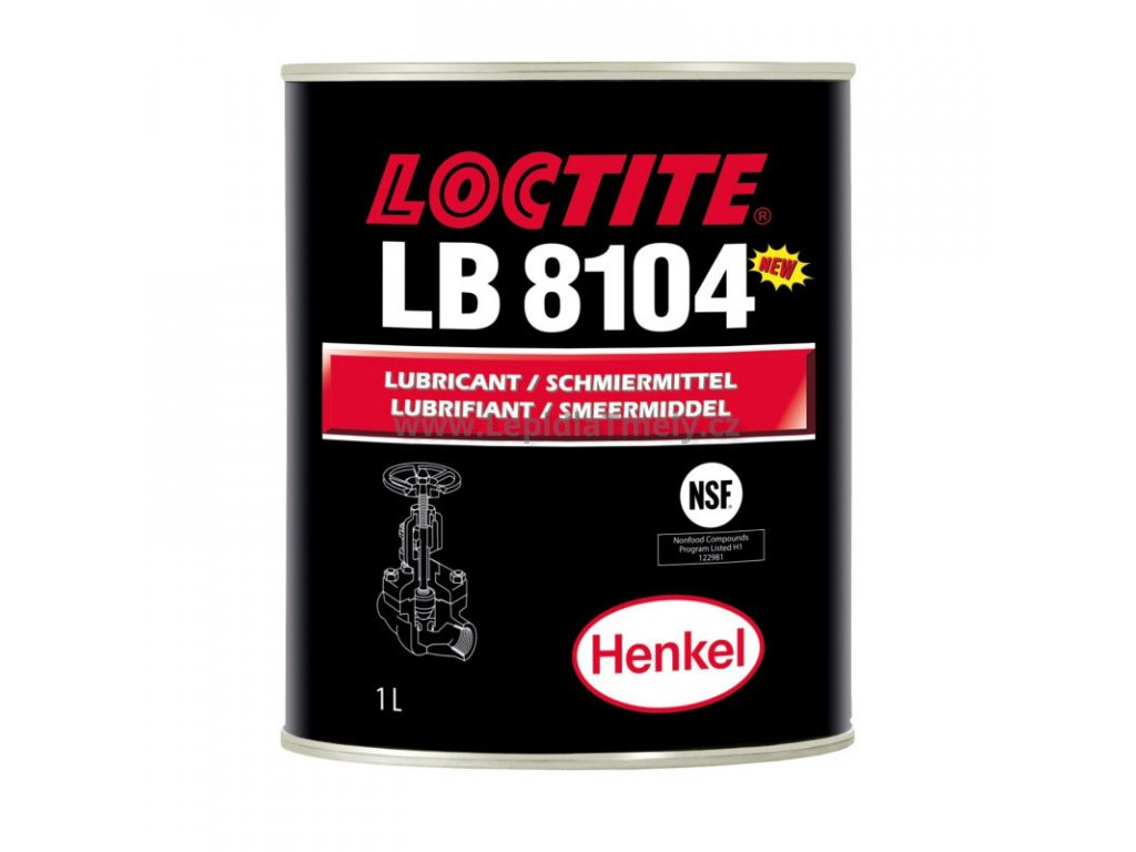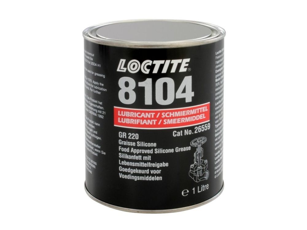 Silikonový mazací tuk Loctite 8104 pro armatury a ucpávky, vhodný pro zařízení v potravinářském průmyslu. Je možné jej použít i na ložiska s malou rychlostí. Loctite 8104 je vhodný pro mazání plastových a elastomerových součástí (jako jsou např. armatury a spoje v rozvodech teplé i studené vody). Je možné jej použít pro snazší montáž O kroužků. Též použitelný pro ventily a těsnění spojů u zařízení na zpracování potravin, včetně mokrých aplikací. Má výtečné dielektrické vlastnosti a je chemicky odolný. Je atestován v FDA amer. USDA, kategorie H1 a ve francouzské CNERNA.