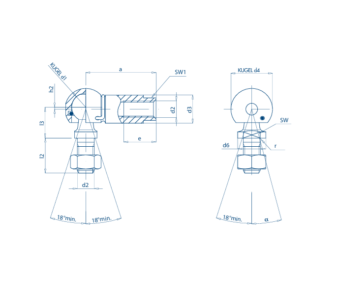 Kĺb sa skladá z guľovej panvy a guľového čapu so závitom a maticou, štandardným materiálom je pozinkovaná oceľ.