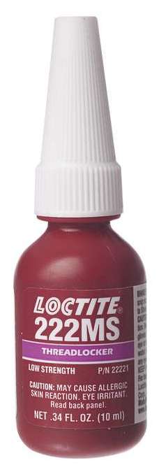 Loctite 222 je určen pro zajišťování a těsnění závitových spojů, které vyžadují snadnou demontáž za použití běžného ručního nářadí. Produkt vytvrzuje bez přístupu vzduchu ve spáře mezi lepenými kovovými povrchy a zabrání uvolnění či prosakování spoje, které je způsobené vibracemi a rázy.