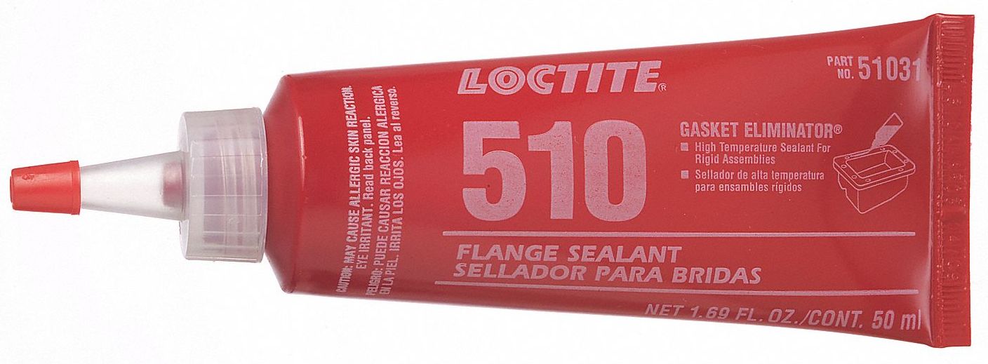 Loctite 510 pro tuhé příruby, vytvrzuje bez přístupu vzduchu ve spáře mezi lepenými kovovými povrchy. Je určen pro běžné těsnění, pro tmelení přírub nebo tuhých kovových dílů - těsnění vytvořené na místě. Výborné okamžité utěsnění.