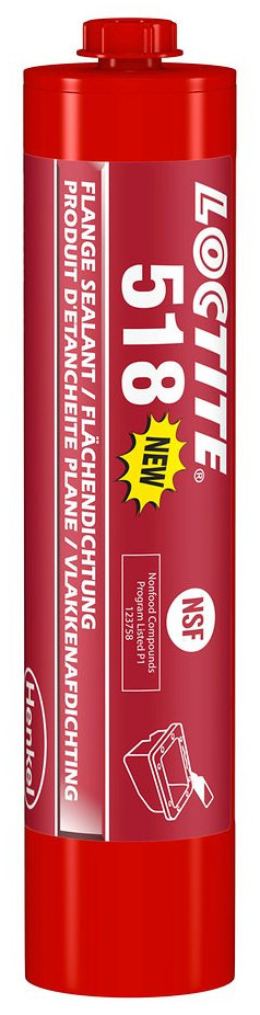 Loctite 518 je jednosložkový, středněpevnostní, anaerobní polopružný těsnící produkt, který vytvrzuje ve spáře mezi dvěma tuhými kovovými povrchy. Typické aplikace zahrnují utěsňování lícovaných spojů mezi pevnými kovovými povrchy nebo přírubami. Ochraňuje proti korozí.