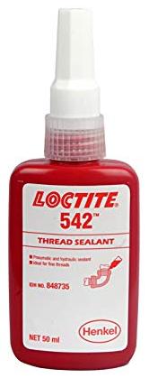 Loctite 542 středně pevnostní těsnění hydrauliky s nízkou viskozitou. Je určený pro těsnění a zajišťování kovových trubek a tvarovek. Doporučuje se pro spoje s jemným závitem, které se používají v hydraulických a pneumatických instalacích a obecně pro malé fitinky.