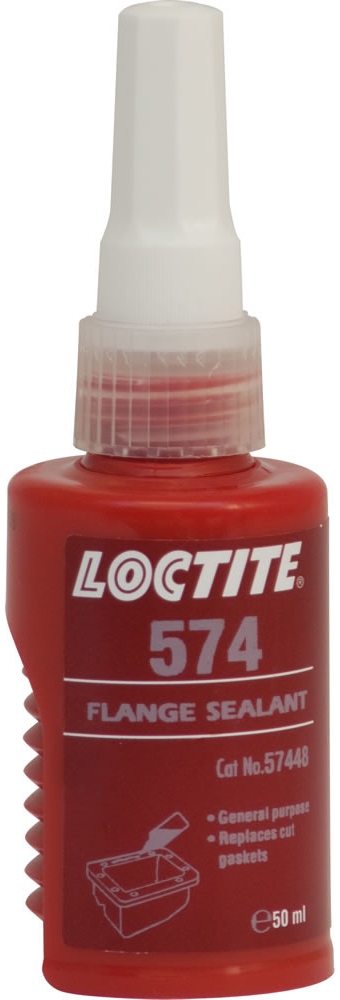 Loctite 574 těsní lícovaná spojení ve spáře mezi pevnými kovovými povrchy vytvrzující bez přístupu vzduchu. Vykazuje odolnost vůči malému tlaku okamžitě po sestavení přírub. Typické použítí jako na místě vytvářené těsnění na tuhých přírubových spojích, například jako těsnění převodovky a těsnění skříních motorů. Malá tolerance k mikropohybům.