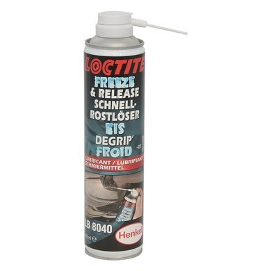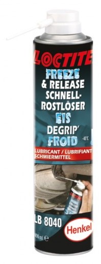 Zmrazovací sprej Loctite 8040 je minerální olej speciálního složení pro uvolňovaní zarezlých, zkorodovaných a zadřených součástí. Efekt šokového zmrazení ochladí součásti okamžitě až na -43 °C a způsobí mikroskopické trhlinky ve vrstvě rzi. To umožní mazným přísadám kapilárně navzlínat přímo do vrsty rzi. Uvolněné součásti pak zůstavají namazané a chráněné před další korozí.