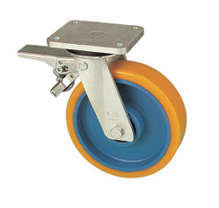 RWK 160/GVN Otočné kolo se žlutou polyuretanovou obručí s brzdou