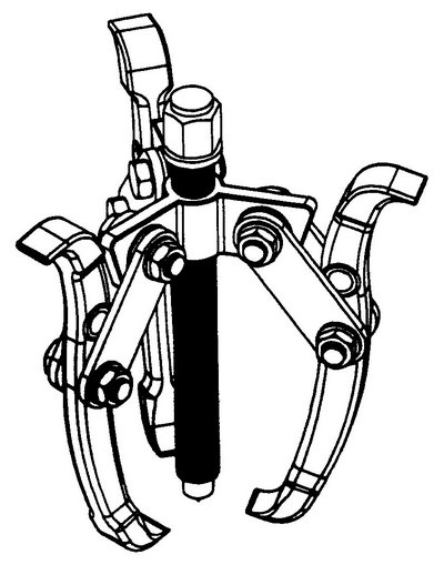 Mechanický stahovák 2 nebo 3 ramena. Ramena se nastavují do dvou různých výškových poloh. Pro průměr 40-87mm, stahovací hloubka 100mm, délka závitu 100mm.