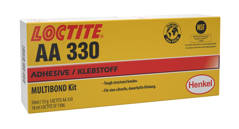 Loctite 330 je jednosložkové viskozní akrylátové lepidlo, které se nemíchá, rychle tvrdne, je houževnaté a má vysokou odolnost vůči nárazům. Loctite 330 vytvrzuje s pomocí aktivátoru 7386.