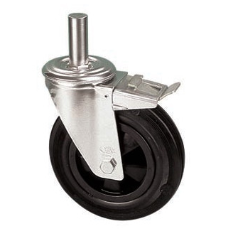 PNB 200/HRD Otočné kolo s černou obručí s čepem 27x65 a brzdou
