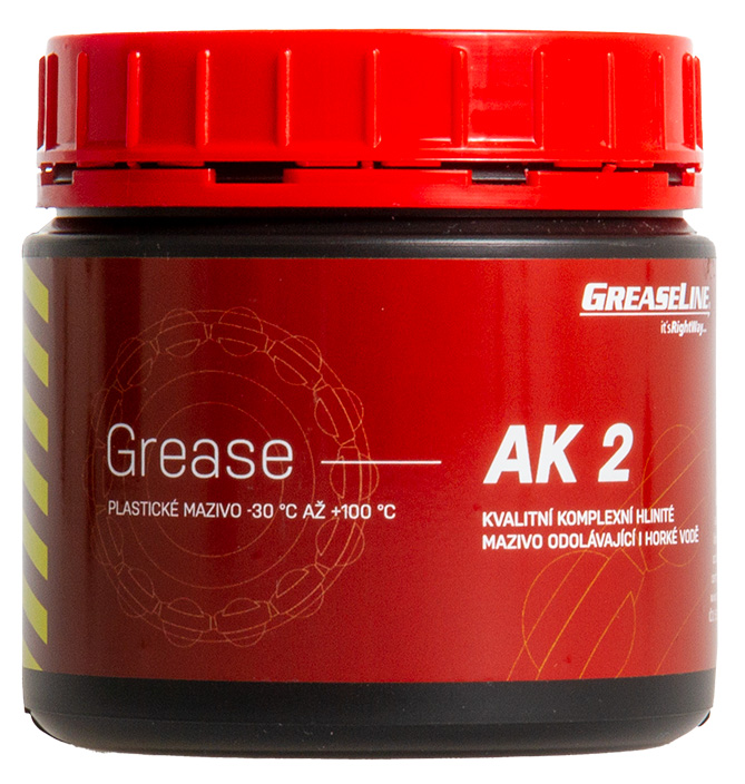 GREASELINE GREASE AK 2 je víceúčelové, vodě odolné plastické mazivo, vyrobené z kvalitního ropného mazacího oleje, zpevněného hlinitým komplexním mýdlem bez EP přísad a plnidel. Je měkké až poloměkké konzistence, hladké krátkovláknité struktury. Velmi dobře odolává vlivu studené i horké vody.