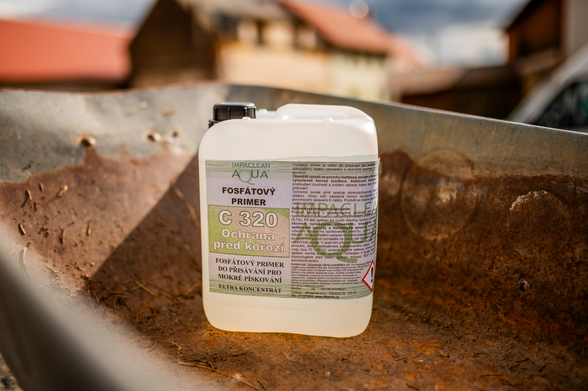 AQUA C 320 je čirá kapalina obsahující organické složky k vázání rzi a fosfátování tak, že okamžitě zastavuje korozi a současně odmašťuje a vytváří ochranný fosfatizační povlak.