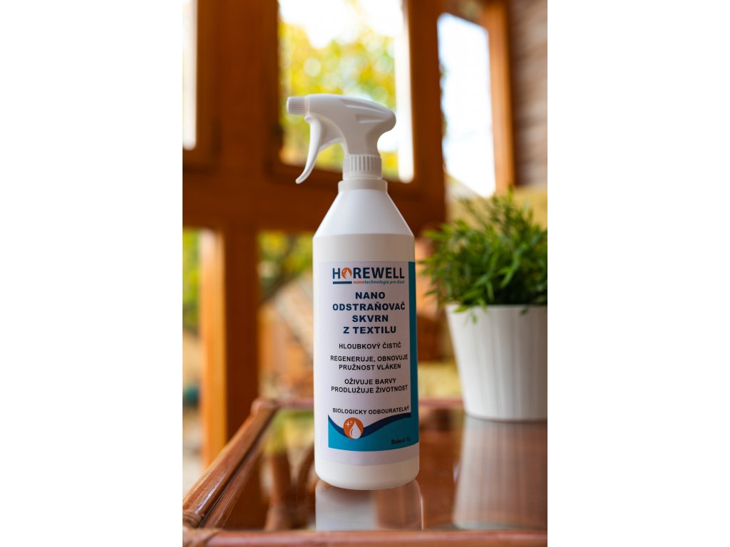 NANO ODSTRAŇOVAČ SKVRN Z TEXTILU je silně účinná čistící látka s regenerační ochranou vláken vyráběná novou technologií zplyňování. V jediném úkonu vyčistí silně odolné nečistoty a odstraní odolné skvrny, se kterými si neporadí NANO ČISTIČ TEXTILU A ČALOUNĚNÍ. Vláknům vrátí původní pružnost a jemnost, oživí barvy. Jedinou aplikací vyčistí různé druhy znečištění, např. zažloutnutí, mastnotu, plísně, znečištění od trávy, nikotin, lidský pot, krev, stopy po parfémech, mléčných výrobcích, skvrny od rtěnky, čokolády, červeného vína, zeleninových a ovocných šťáv, atd. Velmi dobře odstraňuje moč a skvrny způsobené zvířaty. Ideální na tkané a netkané textilie, mikroplyš, čalounění, koberečky, potahové látky a přehozy, textilní vlákna, technické látky a vlákna, atd. Je možno jej použít na odstranění skvrn z oblečení, sofa, ubrusů, závěsů, čalouněného nábytku, polštářů, povlečení, autopotahů a mnoho dalšího