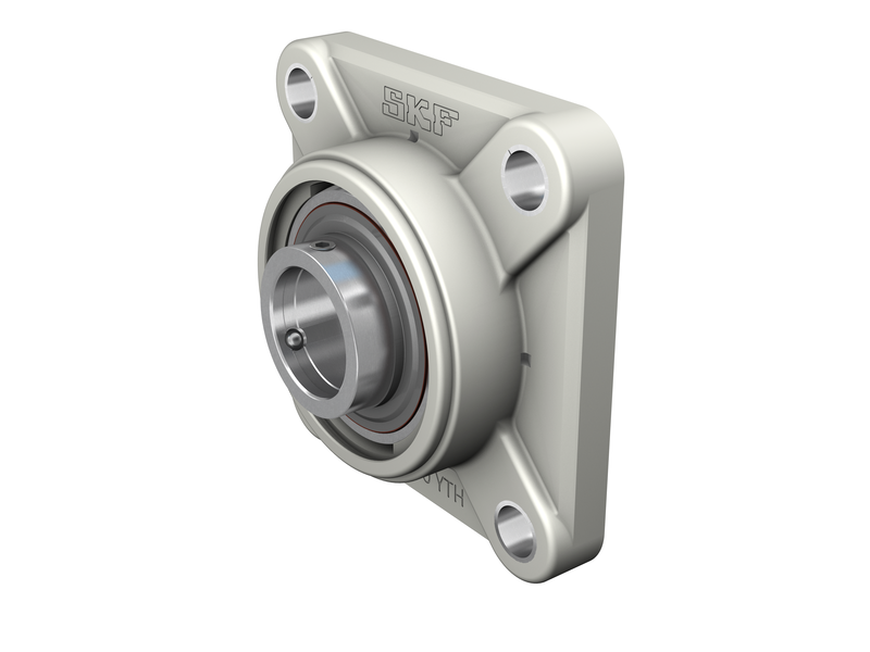 Tyto čtvercové přírubové jednotky kuličkových ložisek jsou navrženy speciálně pro potravinářský sektor a výrobu nápojů. Mají dobrou odolnost vůči chemikáliím, jsou lehké a pevné. Jednotku tvoří vkládací ložisko s rozšířeným vnitřním kroužkem a pojistným stavěcím šroubem a je vhodná pro použití tam, kde je směr otáčení stálý nebo střídavý. Ložisko je namontované v kompozitním tělese, které lze přišroubovat ke stěně stroje nebo rámu. Jednotky kuličkových ložisek se umí přizpůsobit mírné počáteční nesouososti, ale běžně axiální posunutí nedovolují.