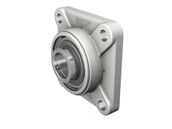Tyto čtvercové přírubové jednotky kuličkových ložisek jsou navrženy speciálně pro potravinářský sektor a výrobu nápojů. Mají dobrou odolnost vůči chemikáliím, jsou lehké a pevné. Jednotku tvoří vkládací ložisko s rozšířeným vnitřním kroužkem a pojistným stavěcím šroubem a je vhodná pro použití tam, kde je směr otáčení stálý nebo střídavý. Ložisko je namontované v kompozitním tělese, které lze přišroubovat ke stěně stroje nebo rámu. Jednotky kuličkových ložisek se umí přizpůsobit mírné počáteční nesouososti, ale běžně axiální posunutí nedovolují.