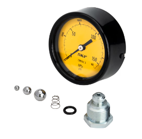 Tlakoměry SKF jsou určeny k použití s hydraulickými čerpadly a olejovými injektory SKF. Tlakoměry jsou naplněny kapalinou a opatřeny omezovacím šroubem, který absorbuje náhlé poklesy tlaku a předchází tak poškození přístroje. Všechny tlakoměry mají standardně bezpečnostní sklo a odfukovací lamely, a dvojitou stupnici (MPa/psi).