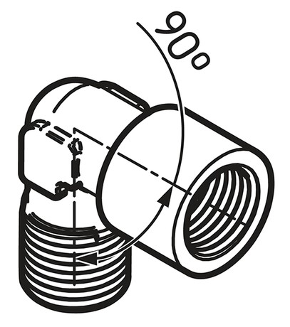 Příslušenství SKF LAPA 90 je úhlová přípojka 90 stupňů se závity vnější G 1/4 na vnitřní G 1/4 vhodná pro jednobodové automatické maznice LAGD, TLSD a TLMR.
