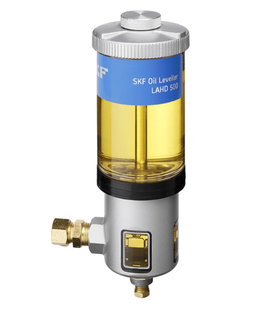 Zařízení pro vyrovnávání hladiny oleje se skládá ze dvou propojených, nad sebou umístěných olejových nádrží. Spodní nádrž je v přímém styku s mazaným zařízením, hladina oleje tedy dosahuje do stejné výšky jako uvnitř aplikace. Přímý kontakt spodní nádrže s okolním prostředím zajišťuje odvzdušňovací trubice. Vrchní nádrž je vzduchotěsná nádoba naplněná olejem na doplnění. Vrchní a spodní nádrž jsou přímo propojeny prodlouženým hrdlem, které je ponořeno do oleje ve spodní nádrži. Olej může přetékat pouze z vrchní nádrže do spodní, když se hladina ve spodní nádrži sníží pod stanovenou úroveň. Současně ze spodní nádrže do vrchní uniká prodlouženým hrdlem vzduch. SKF dodává dvě různé velkosti LAHD 500 s nádrží o objemu 500 ml a LAHD 1000 s nádrží o objemu 1000 ml.